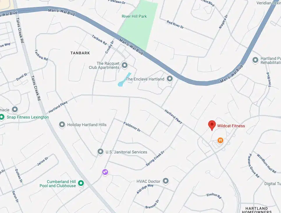 Wildcat Fitness is located just off Man O’ War Boulevard in the Hartland Neighborhood. You can find us in between Kroger and Goodwill.